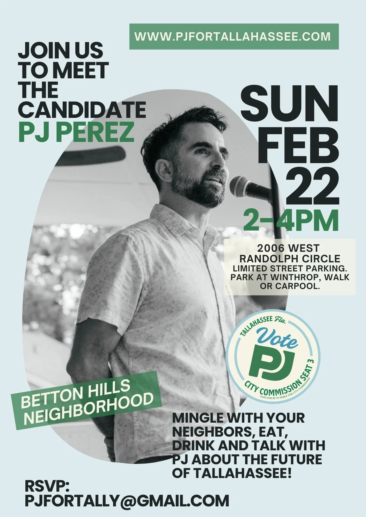 Meet PJ, grab a slice and learn how Tallahassee can be a city that works for everyone on January 24 at 1pm!